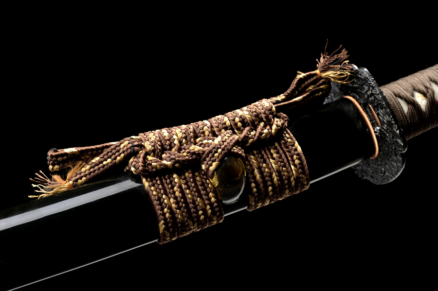 的珍珠鱼皮缠添丝柄卷;刀镡用铜制复古;配优质朴木牛角鞘……