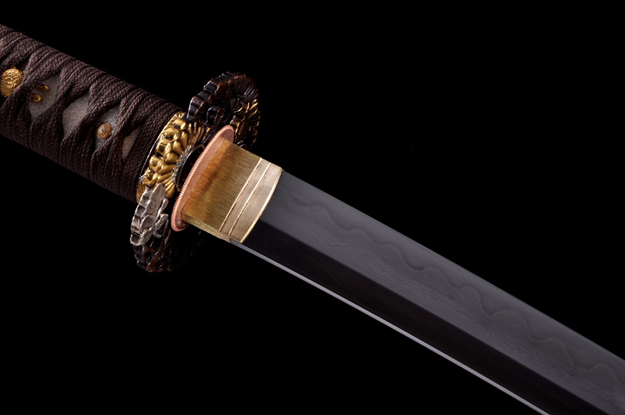 这款武士刀采用百炼钢+45#钢经古法甲伏锻工艺手工锻造,刃部经敷土烧刃热处理,十三