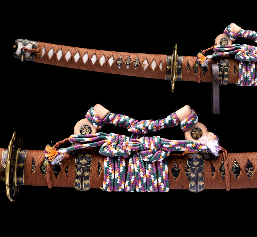 十三道手工精细研磨;刀装为黄铜精制;刀鞘为青皮木烤漆;是一款非常经典的太刀,