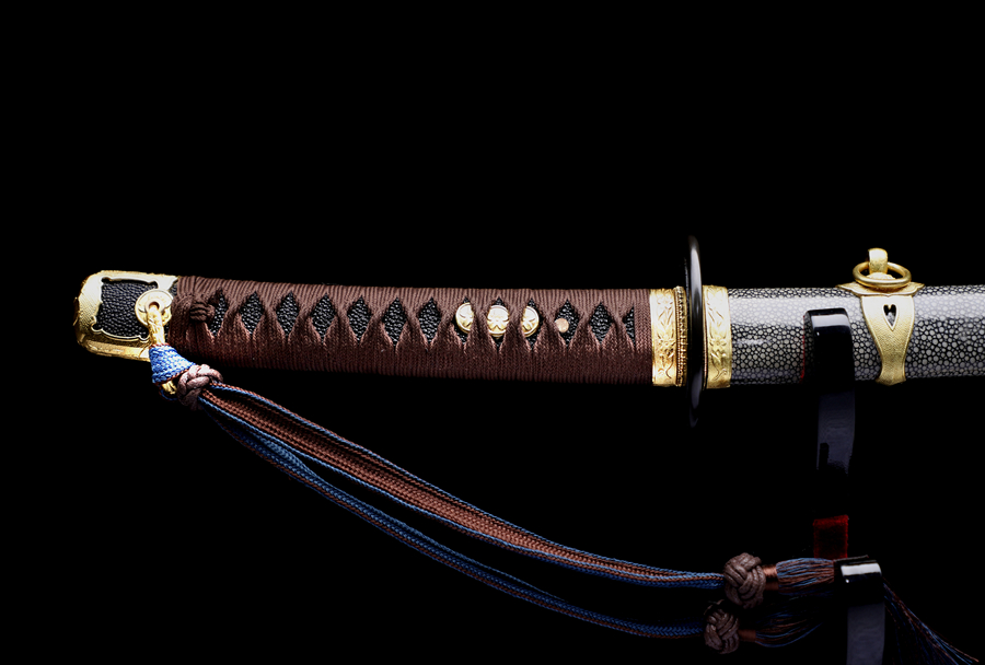 刀鞘为木芯包上品珍珠鱼皮;是一款收藏实用兼备的军刀。限量发行88把。