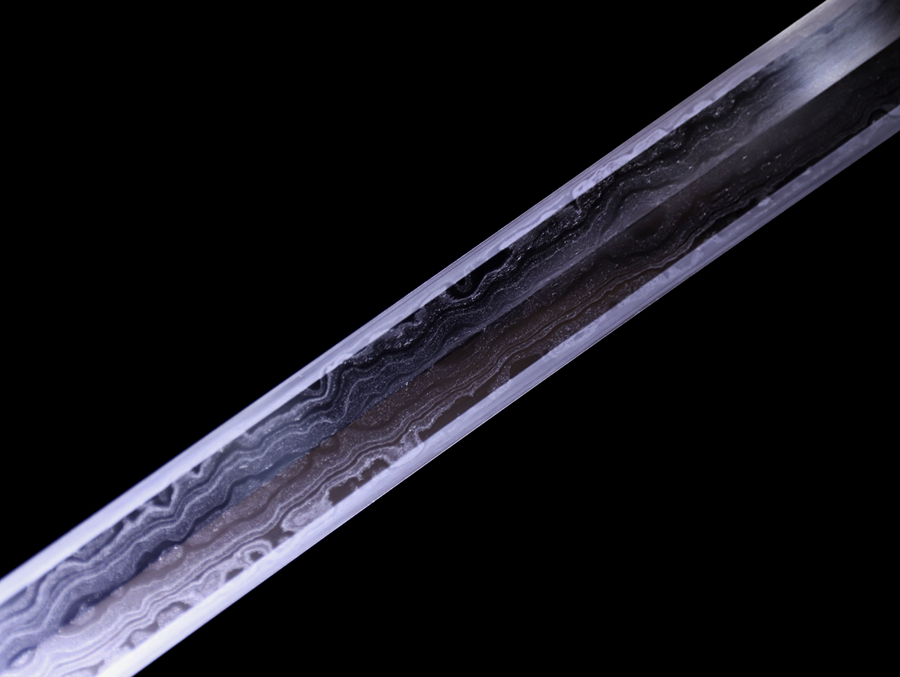 豪华收藏系列之紫英唐剑-珍藏版:剑身采用草钢混合毛铁折叠锻打至12000层并加入独家自炼钢制作出独特精美花纹,