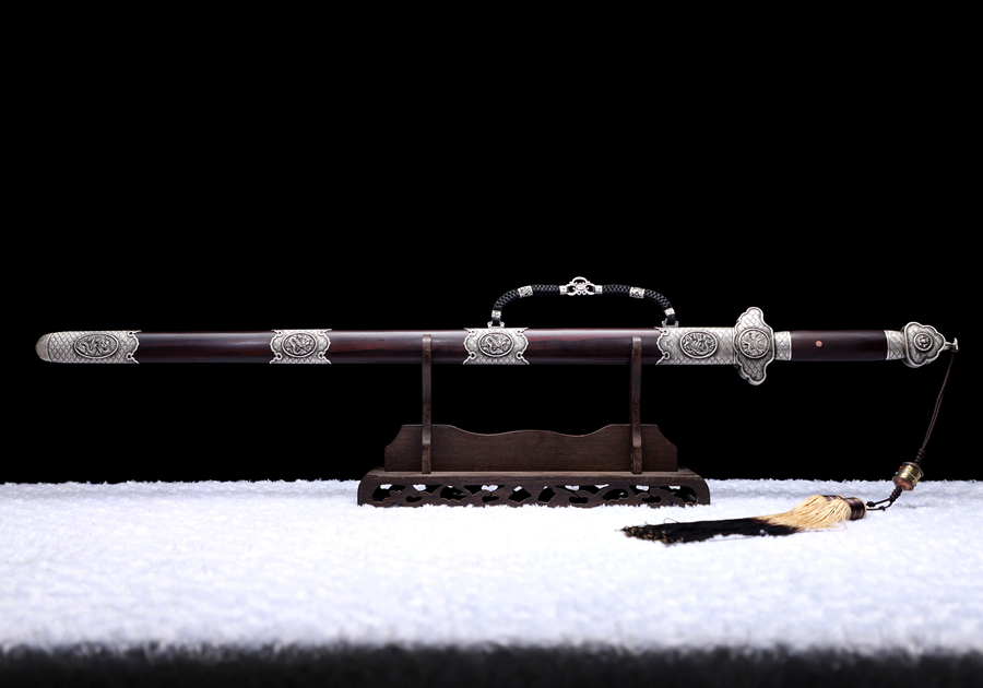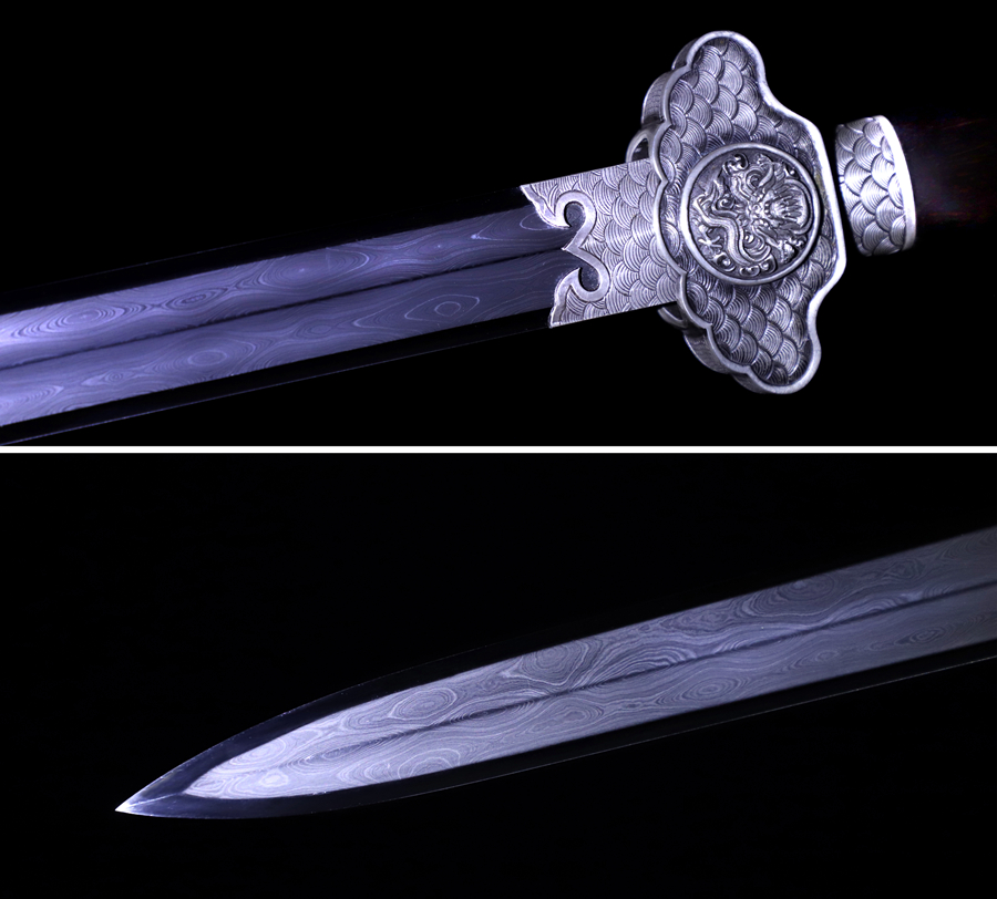 豪华收藏系列之银雕龙吟剑-珍藏版:剑身采用纯手工光复级秘炼钢古法锻造,瓦面,