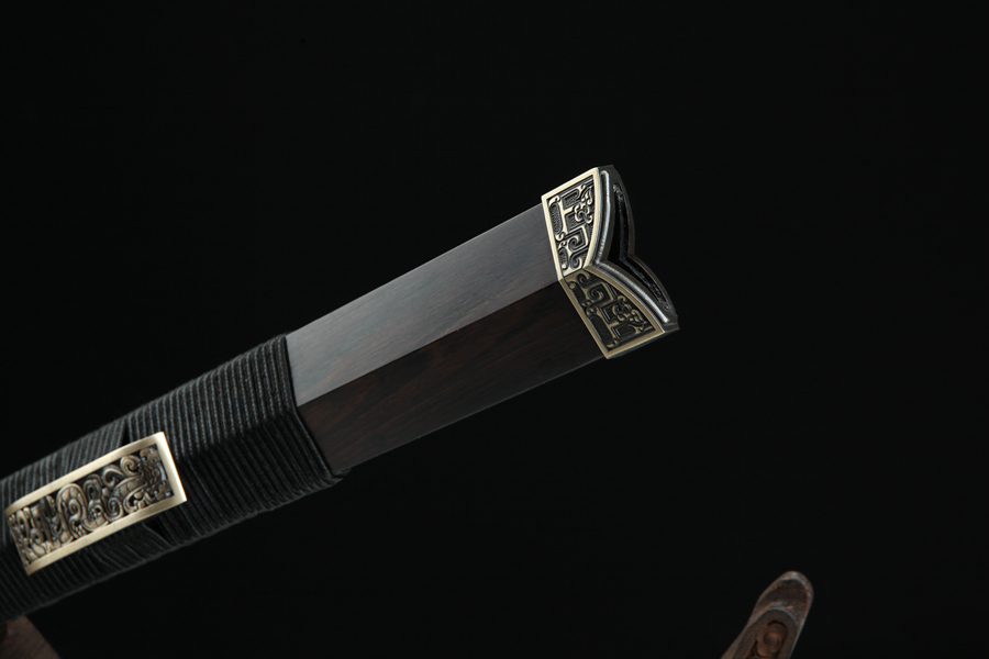 装貝:纯铜精雕、精细打磨、做旧;剑鞘:优质黑檀木;剑身: