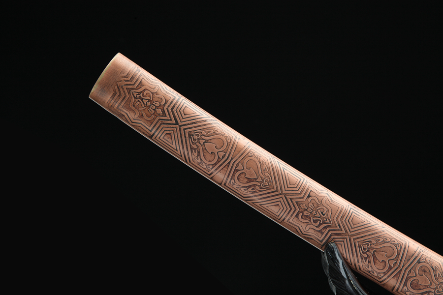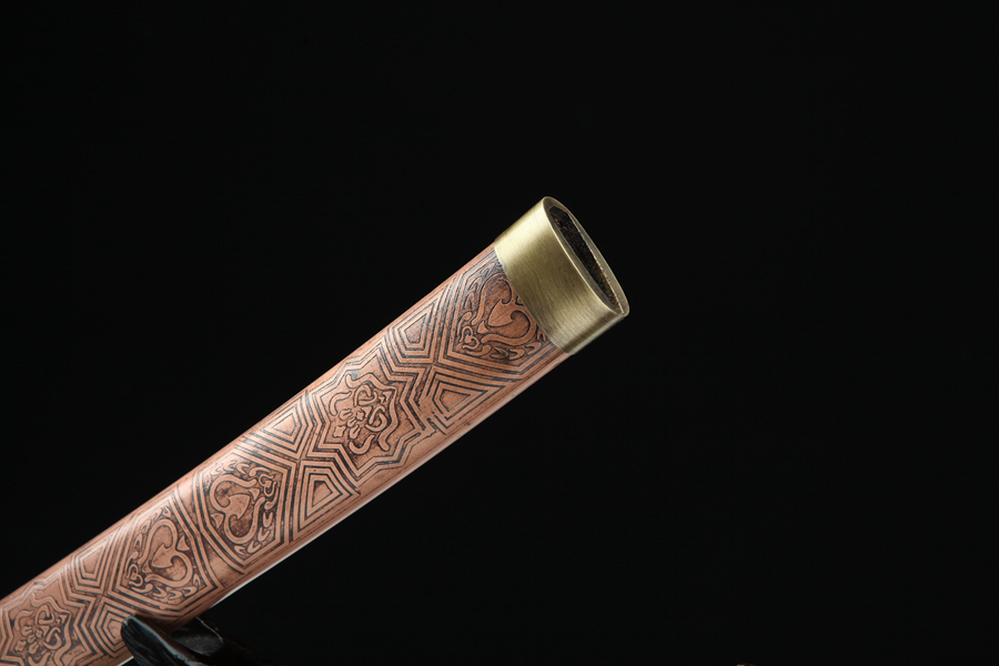 装具:纯铜精雕、精细打磨;剑鞘:紫铜精雕;