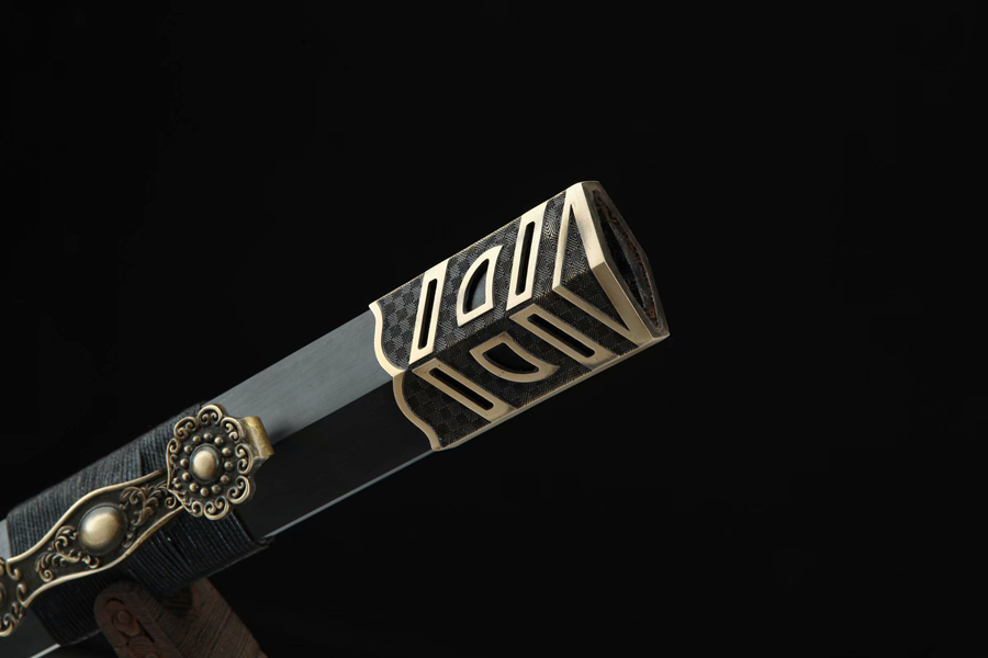 全长:78.5cm 除鞘长:75cm柄长:18.5cm 刃长:54cm 刃宽:3.5cm 刃厚:0.8cm总重:1.7kg 除鞘重:1.21kg装貝:纯铜精雕、精细打磨、做旧;剑鞘:优质黑檀木;剑身:百炼花纹钢、手工锻造、剑身八面开双槽造形设计、精细手磨12411020。花纹钢烧刃另加115。