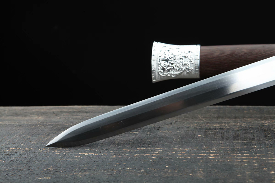 全长:103.5cm 除鞘长:101cm 刃长:76.5cm 柄长:26.5cm 刃宽:3.6cm 刃厚:0.8cm 总重:2kg 除鞘重:1.46kg 装具:合金装、镀银色;剑鞘:优质鸡翅木;剑身:高碳钢手工锻打、精细手磨