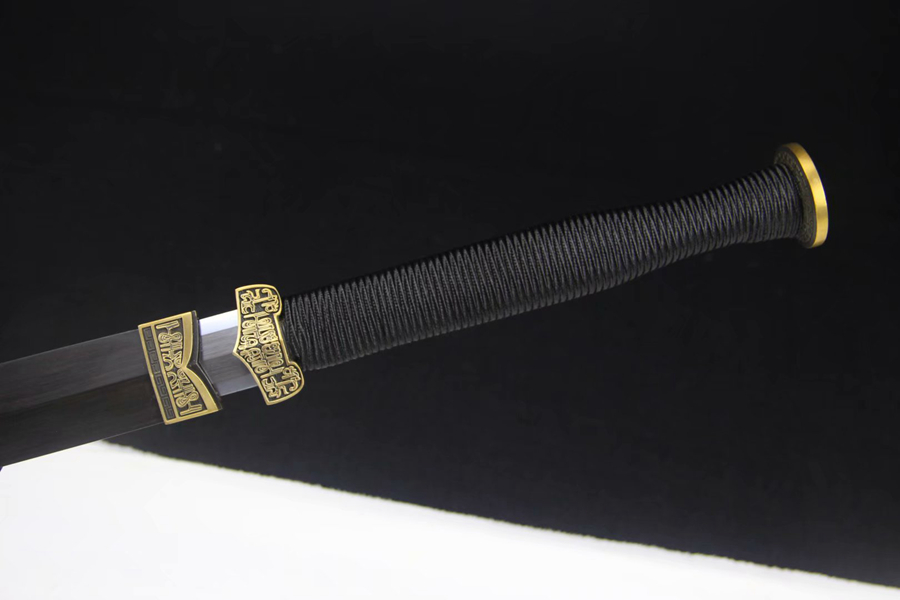 装貝:纯铜精雕,剑鞘:优质黑檀木,剑身:百炼花纹钢03381450、花纹钢烧刃另加155