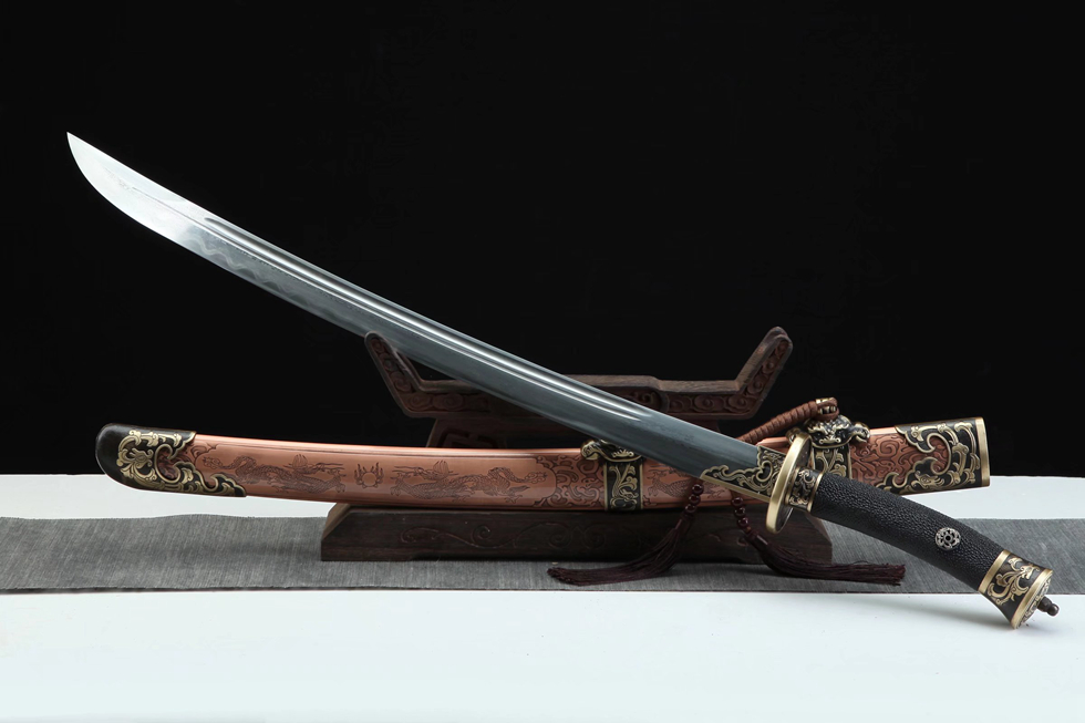 青龙宝刀—“双龙戏珠”黄铜鞘。