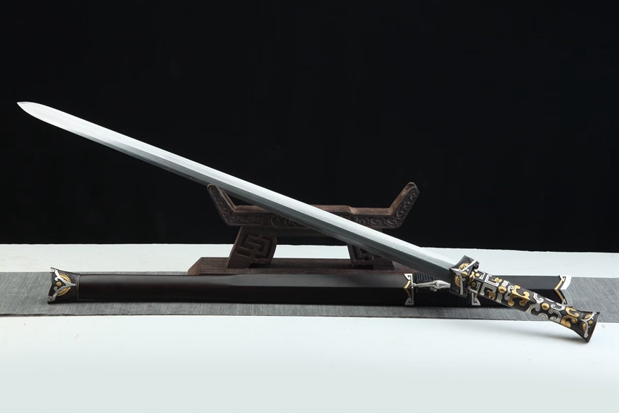 20寸鎏金银龙吟汉剑(黑檀款)。