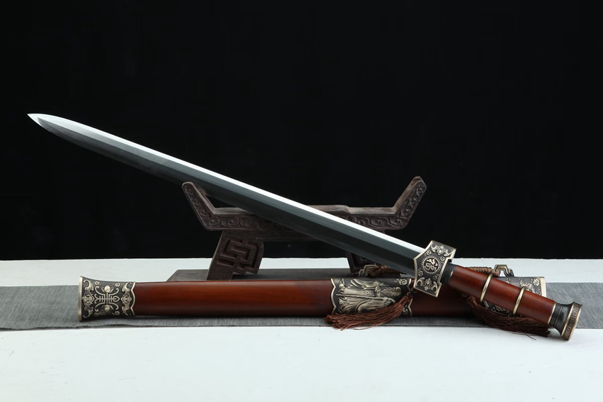 28寸铜装双龙环首唐剑(酸枝木款)。