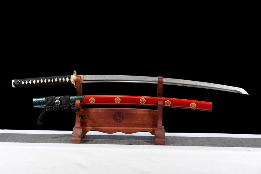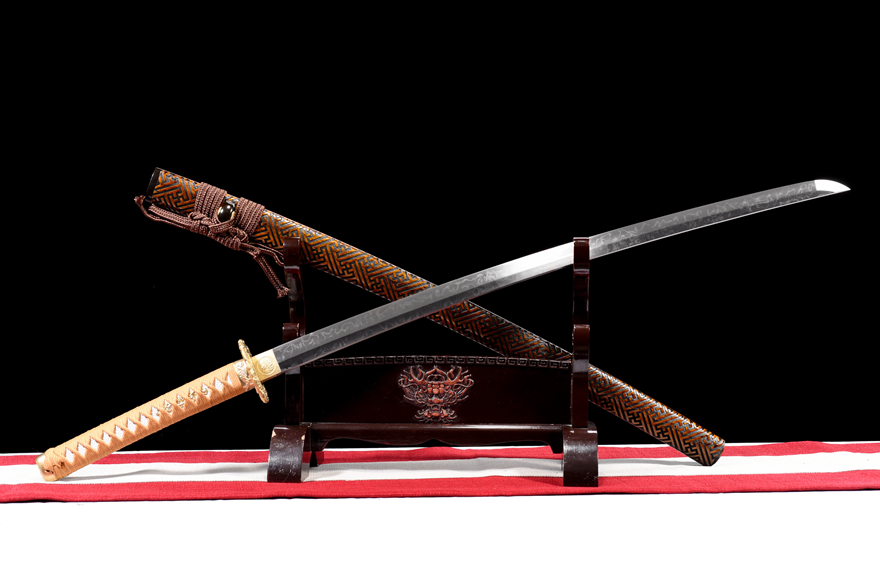 20寸花纹钢烤蓝扭转纹武士刀【腥红之月】