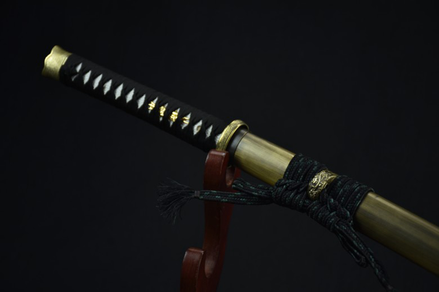 工艺:龙泉传统手工包铜,将铜皮包到鞘上起到保护和禁锢作用