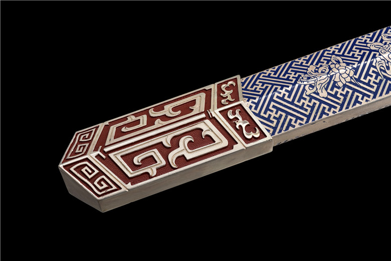 鞘材:包铜雕刻烧蓝彩 配件:手工雕刻铜装配件