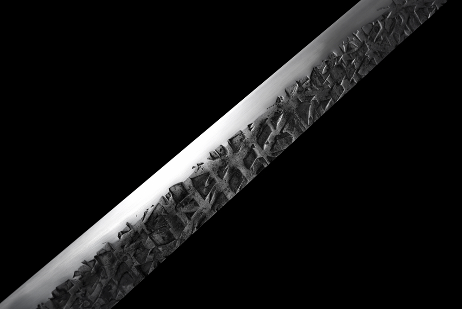 300黄金比例设计全长112厘米,柄长31厘米采用防滑蜡绳缠带法手感舒适,刃长74厘米,净重3斤,刃宽4厘米,刃厚0.5厘米采用锰钢一体煅打刀身,特殊煅打花纹,硬度高达60°