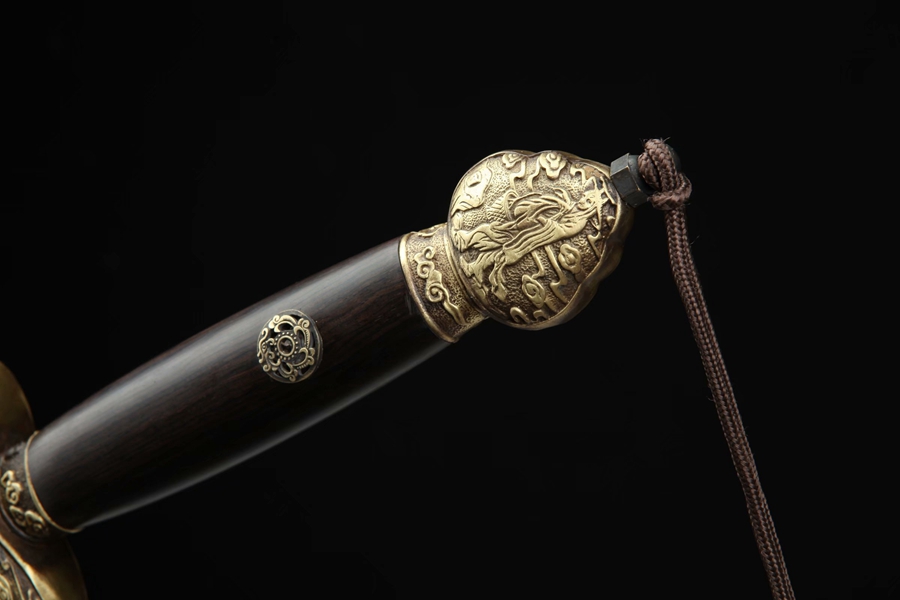 三色铜“青龙刀盘”武士刀(黑檀木款)