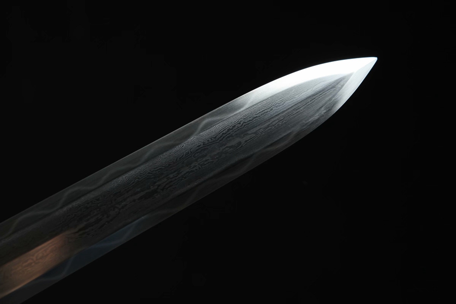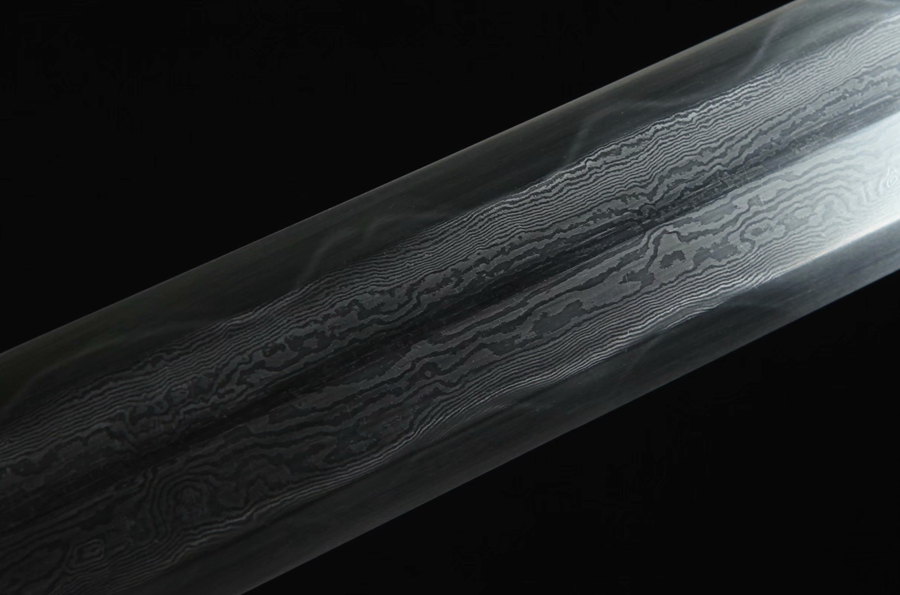 剑鞘:优质黑檀木;剑身:百炼花纹钢、手工铸造、精细研磨、09951700。花纹钢烧刃另加155。