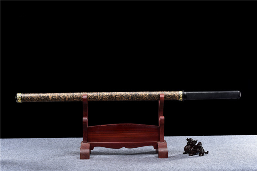 全长102.5cm 、韧长70cm 、柄长25.5cm、韧宽3.2cm 、厚0.5cm 、重约1.10kg。