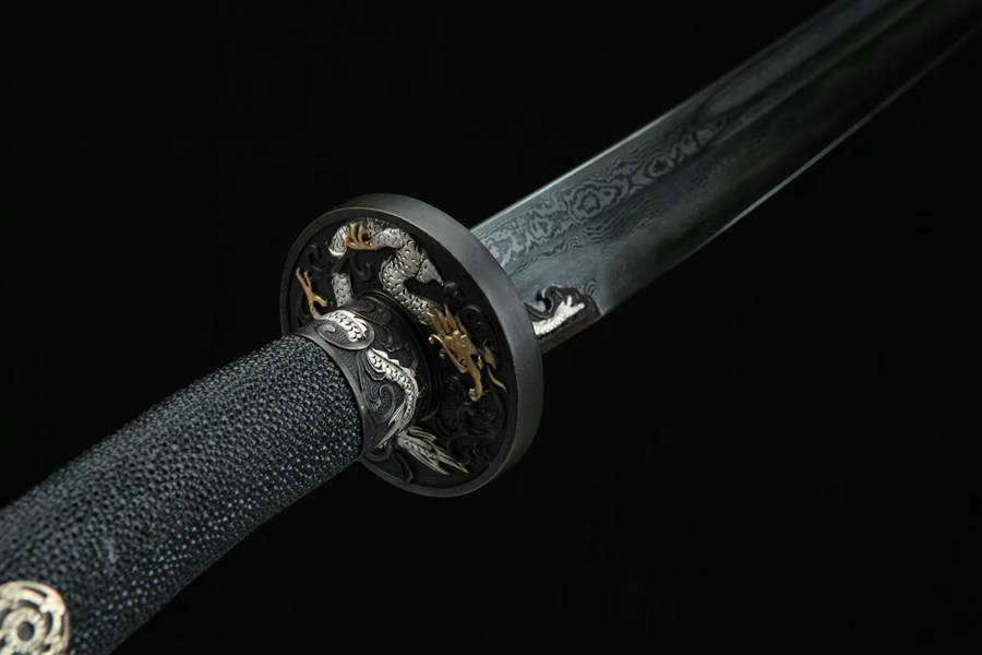 三色铜“青龙刀盘”武士刀(黑檀木款)