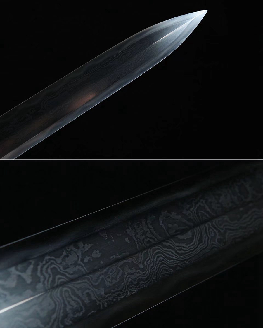 剑身:百炼花纹钢、手工锻造、精细手磨16162250。花纹钢烧刃另加155。