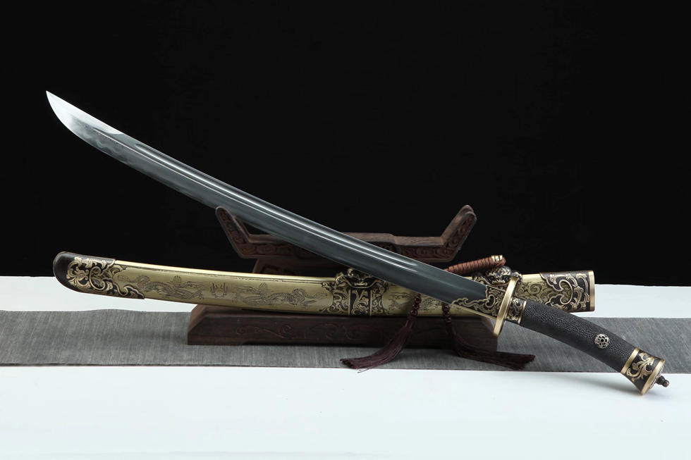 青龙宝刀—“双龙戏珠”黄铜鞘。