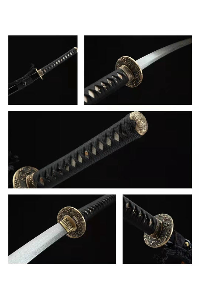 刃材:百炼龙鳞纹工艺:油淬鞘材:油漆实木手工雕刻装具:纯铜柄:真鱼皮(可拆卸)总长:103厘米刃长:71厘米柄长:27厘米刃宽:3.2厘米配置:高端锦盒,刀油