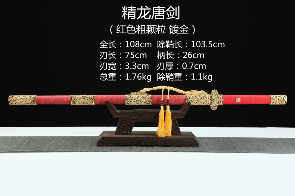 镀金精龙唐剑(真鱼皮粗颗粒—红色款)。