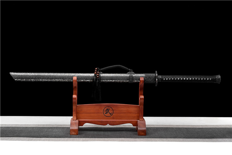 三色铜“青龙刀盘”武士刀(黑檀木款)