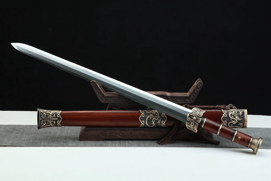 装具:纯铜精雕、精细打磨、做旧;剑鞘:优质酸枝木;