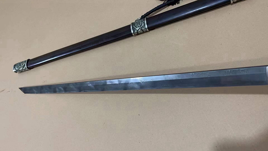 工艺:刀身千锤百炼、经打坯、热锻、铲、锉、磨、热处理(淬火)、回火、初修、精修、手工推磨(研磨)等龙泉古法数十道手工制作而成。