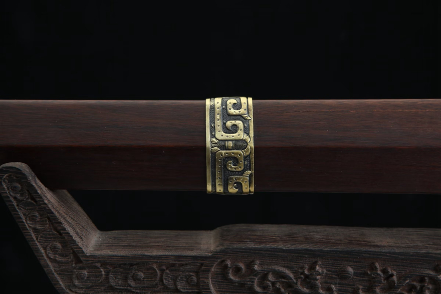 装貝:纯铜精雕、精细打磨、做旧;剑鞘:优质龙凤檀;剑身:百炼花纹钢、手工锻造、精细手磨21911050。花纹钢烧刃另加155。