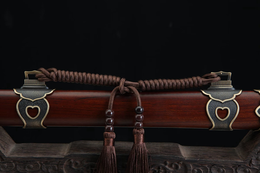装貝:纯铜精雕、精细打磨、做旧;剑鞘:优质酸枝木;