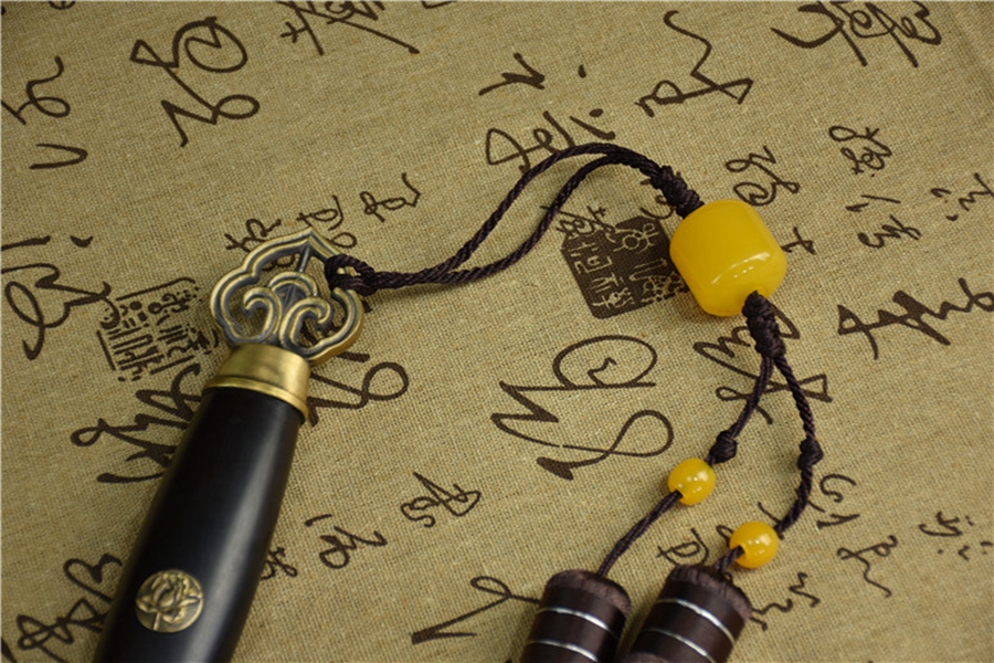 手工包铜荷花唐剑工艺:龙泉传统手工包铜,将铜皮包到鞘上起到保护和禁锢作用