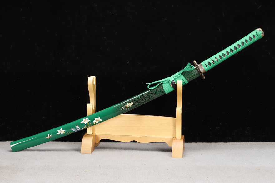 〖性能〗手工18道研磨纯锋利,镜面研磨工艺!硬度60°砍铁不伤刃,刚柔相济!超高性价比高!带鞘全长103厘米,刃长71厘米,柄长26厘米,刃宽3.2厘米,重量约1.32千克。刀身采用T10钢手工锻打,敷土烧刃;刀装为纯铜精雕套装;刀鞘为实木大漆鞘搭配精美下绪,配赠高端锦盒,收藏首选,赠礼佳品