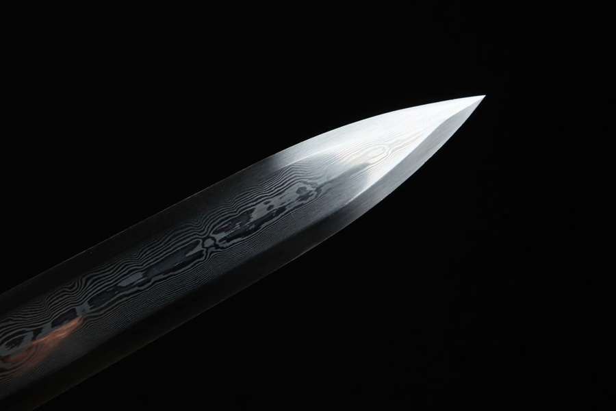 剑鞘:优质鸡翅木;剑身:百炼花纹钢、精细研磨08140690;花纹钢烧刃另加155。高碳钢08140560