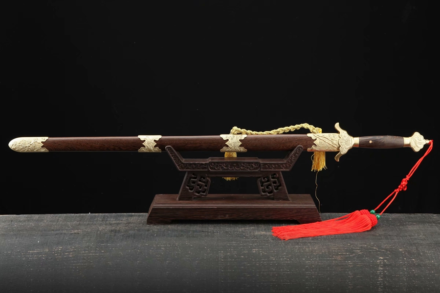 装貝:纯铜精雕、精细打磨—亮铜;剑鞘:优质花梨木;剑身:不锈钢起脊、软剑身06650560