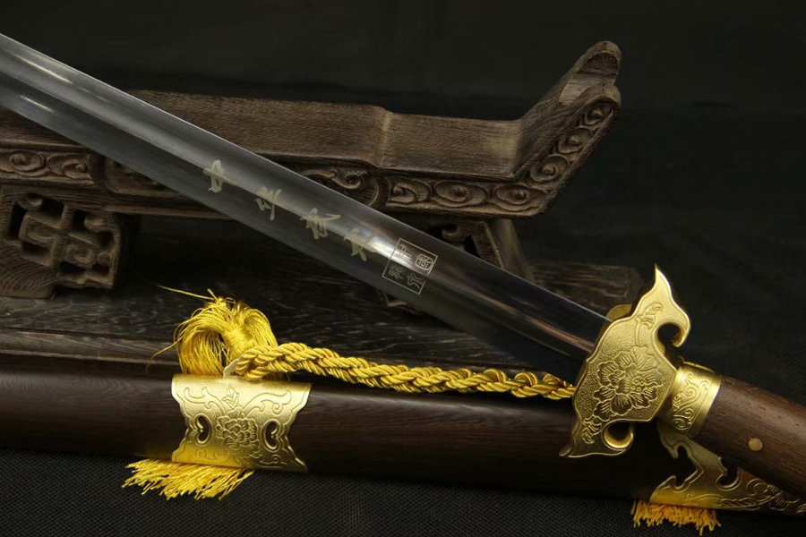 装貝:纯铜精雕、精细打磨;剑鞘:优质花梨木;