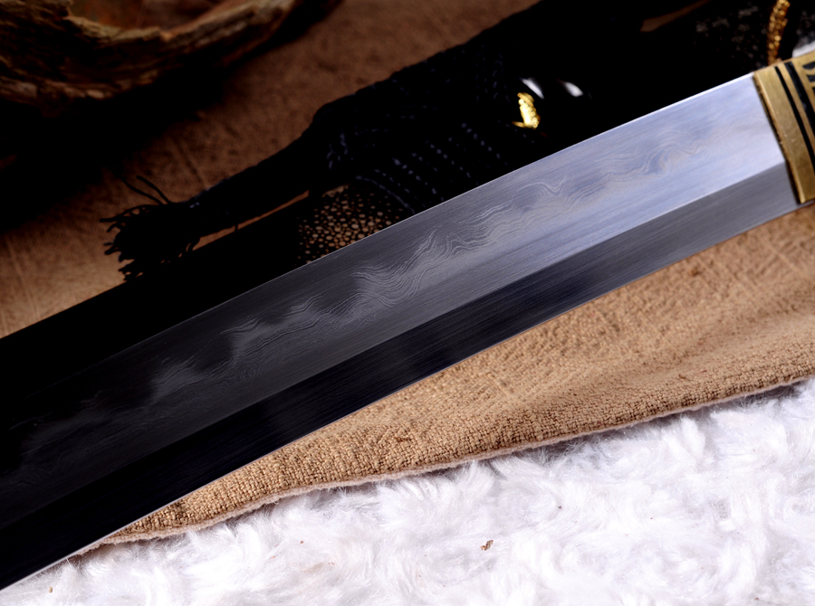 这款刀是地肌钢系列中品质、品相都非常好的一款打刀,采用古法锻制技艺手工锻造