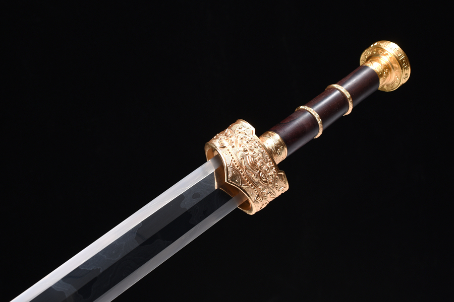 表面镀24K黄金;剑柄及剑鞘选用上品紫檀老料制作。