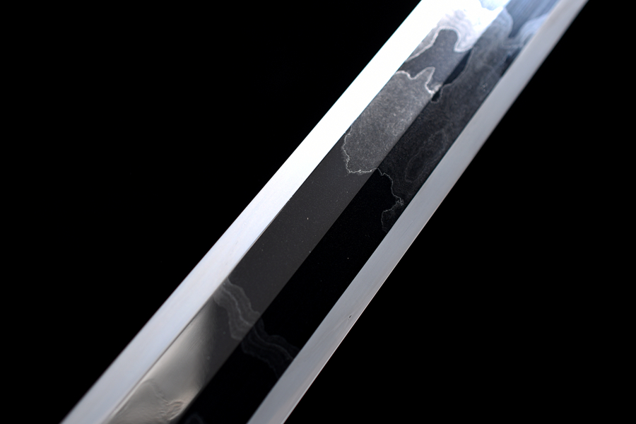 七星井水淬火,八面造,仕上研磨;剑装为黄铜立体手工浮雕上古瑞兽,