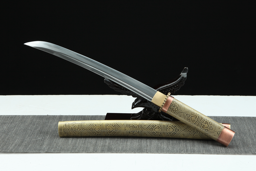 装具:纯铜精雕、精细打磨;剑鞘:黄铜精雕;