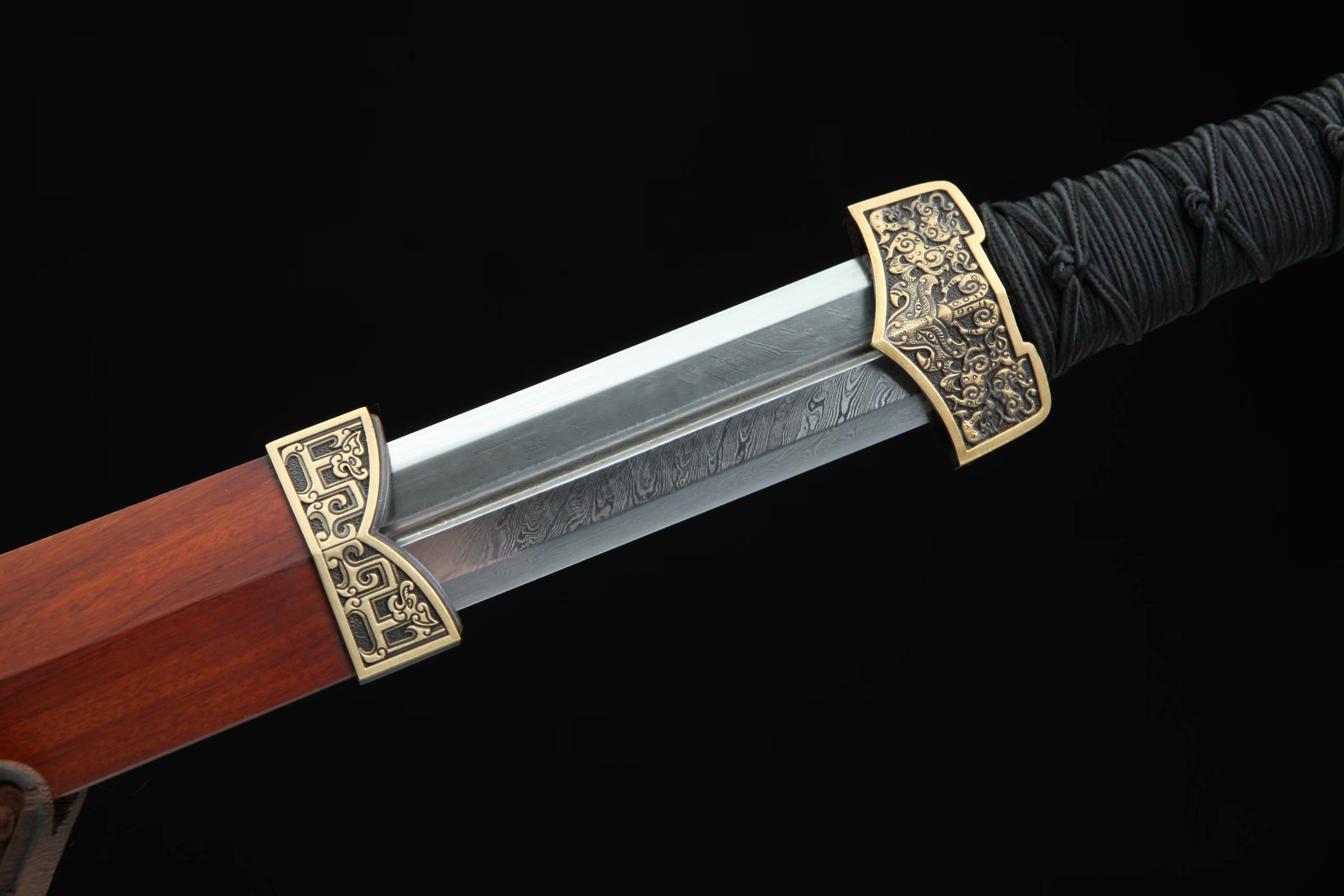 装具:纯铜精雕、精细打磨、亮铜;剑鞘:优质酸枝木;