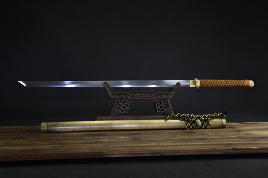 铜装花纹钢凤尾纹武士刀【一叶知秋】